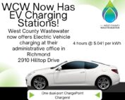 As part of WCW's Clean & Green Sustainability Project, one dual-port ChargePoint electric vehicle (EV) charging station has been installed in the parking lot of the administrative building, located at 2910 Hilltop Drive in Richmond. [...]