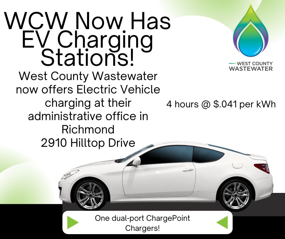 As part of WCW’s Clean & Green Sustainability Project, one dual-port ChargePoint electric vehicle (EV) charging station has been installed in the parking lot of the administrative building, located at 2910 Hilltop Drive in Richmond.